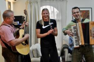Großartiger Empfang für die rot-weiß-rote Delegation der Leichtathletik-WM in Doha in der Residenz des österreichischen Botschafters von Katar, Dr. Willy Kempel. Mit dabei natürlich auch Verena Preiner , die tags zuvor sensationell die Bronze-Medaille im Siebenkampf gewonnen hatte, und Kira Grünberg . Dr. Kempel kümmert sich die ganze WM-Woche sehr lieb um Kira, die diese WM-Tage sehr genießt! p>Diskussion und Inspiration zur Sportschreiberei auf Sportsblogged » Weiterlesen