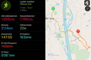 Heute ein Halbmarathon am frühen Abend, den ich VIG-Halbmarathon nenne. Bin vom Office den Donaukanal entlang, dann bei der VIG ein Foto, ein paar Kilometer weiter in den Prater, um erstmals auf der kipchogisierten Hauptallee zu laufen, später rüber nach Donaustadt und dort herumgerundet. Finallly HM in 1:47 und ganz relaxt. Ein bissl frisch wars, ich wollte aber nicht schneller laufen, war ein harter Arbeitstag und ich bin nicht mehr der Jüngste. Aktivität: Lauf Dauer: 01:47:55 Distanz: 21 140 Pace: 05:06 km h: 11.76 Schuhe: Brooks App: Runplugged Uhr: Apple Watch Runkit rechnet: Christian ist im September bisher 79,550 km gelaufen, im Schnitt täglich 4,419 km, ein Plus von 22,14 Prozent gegenüber dem August, als Christian 3,618 km Tagess... » Weiterlesen