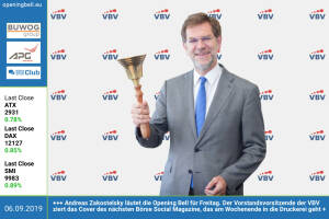 6.9.: Andreas Zakostelsky läutet die Opening Bell für Freitag. Der Vorstandsvorsitzende der VBV ziert das Cover des nächsten Börse Social Magazine, das am Wochenende in die Druckerei geht www.vbv.at http: www.boerse-social.com magazine 5.9.: Marcel Hirscher läutet die Opening Bell für Donnerstag. Er war nicht nur lt. Ted Ligety #goat (Greatest of all time). Raffeisen bedankt sich für die bisherige sensationelle gemeinsame Zeit www.marcelhirscher.at www.rbinternational.com 4.9.: Carola Bendl-Tschiedel läutet die Opening Bell für Mittwoch. Im Team mit Sandra Urach , Karin Freitag , Elisabeth Niedereder und Maria Hinnerth holte sie Team-Bronze für Österreich bei der 50km-WM in Brasov (ROM) http: brasov50km.com (Foto im R... » Weiterlesen