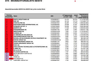 ATX-Beobachtungsliste 08/2019: Alles bleibt beim Alten, Mayr-Melnhof scheitert 2x,...