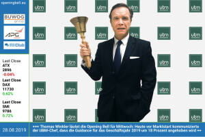 28.8.: Thomas Winkler läutet die Opening Bell für Mittwoch: Heute vor Marktstart kommunizierte der UBM-Chef, dass die Guidance für das Geschäftsjahr 2019 um 18 Prozent angehoben wird http: ubm-development.com 27.8.: Michael Oplustil läutet die Opening Bell für Dienstag. Der IR-Chef der Uniqa, die ja unter den Dividenkings in Europa ist, ist mit seinem Unternehmen bei der "Kampagne pro Aktie" dabei http: www.uniqa.at http: www.boerse-social.com kampagne-pro-aktie 26.8.: Petra Wolkenstein und Christian Nehammer läuten die Opening Bell für Montag. konsultori richtet sich an Kreativwirtschaft, Startups bzw. Technologie-Unternehmen und ist Direct Funding Partner der Börse www.konsultori.com http: www.wienerborse.at www.facebook.com gro... » Weiterlesen
