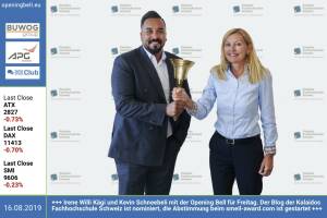 Irene Willi Kägi und Kevin Schneebeli läuten die Opening Bell für Freitag