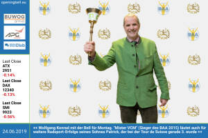 25.6.: Hans Volckens läutet die Opening Bell für Dienstag. Mit einem Text des Ex-Vorstands der CA Immo (jetzt bei der KPMG) starten wir heute im #gabb eine Gastkommentar-Kolumnen-Serie http: www.boerse-social.com gabb www.facebook.com groups GeldanlageNetwork 24.6.: Wolfgang Konrad mit der Opening Bell für Montag. "Mister VCM" (Sieger des BAA 2015) läutet auch für weitere Radsport-Erfolge seines Sohnes Patrick Konrad , der bei der Tour de Suisse gerade 3. wurde. Gratulation an Patrick auch von uns! www.tourdesuisse.ch de www.vienna-marathon.com http: www.runplugged.com baa www.facebook.com search top ?q=sportsblogged http: www.runplugged.com 21.6.: Wolfgang Praskac läutet die Opening Bell für Freitag. In einem Interview für das n&au... » Weiterlesen