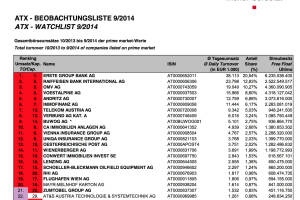 Liebe Leser!Die Wiener Börse hat die ATX-Beobachtungsliste 9 2014 veröffentlicht. Diese umfasstGesamtbörseumsätze 10 2013 bis 9 2014 der prime market-Werte. Für die nächste Umstellung massgeblich wird die Liste von 03 2015 sein. Heisst: Sieben Monate picken, fünf werden noch ersetzt. Die Konstellation: Zuletzt wurde Buwog statt Mayr-Melnhof aufgenommen und die Buwog wird auch im März-ATX dabei sein, das Unternehmen liegt im guten Mittelfeld der Liste. Mayr-Melnhof hat aufgrund der hohen Volumina rund um das Ausscheiden aus dem Index dafür Zumtobel überholt und liegt nun beim Umsatz wieder auf ATX-Rang. Aktuell wäre also "Mayr statt Zumtobel", aber es sind noch fünf Monate Zeit. Weitere Unternehmen spielen derzeit keine Rolle. Eine Sonderrolle k&... » Weiterlesen