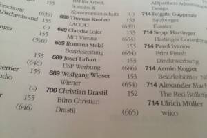 Beim Extradienst-Ranking der “Kommunikatoren 2011″ war ich noch 368. geworden. Damals stand noch "Börse Express" dabei. Im Vorjahr bin ich mit "Büro Christian Drastil" um fast 300 Ränge auf 665 (eins an der Teufelszahl vorbei) abgerutscht. Und bei den "Kommunikatoren 2013" bin ich jetzt nur noch 700. Trotzdem: Man freut sich immer, wenn man bei sowas dabei ist. Leider sind ja fast alle Finanzmarktmenschen rausgefallen aus den Top 1000 (ich hab nur zwei andere gesehen) und auch kaum Online-Leute dabei. Siegerin ist Eva Dichand, gute Frau. » Weiterlesen