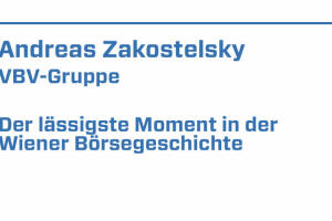 Andreas Zakostelsky, VBV-Gruppe, nennt seine subjektiv lässigsten Momente in der Wiener Börsegeschichte: 1. Im März 2003 konnte ich mit dem Wiener Börse CEO und dem Kapitalmarktbeauftragten der Regierung die „Prämienbegünstigte Zukunftsvorsorge“ vorstellen. 2. 2005 wurde mit der Börse der VÖNIX VBV Österreichischer Nachhaltigkeitsindex gestartet - einer der ersten nationalen Nachhaltigkeitsindizes. 3. 2006 wurde mein Name als Nachfolger des Börse CEOs ins Spiel gebracht. Das war ehrenhaft, ich habe mich aber nicht beworben, es wurde Heinz Schaller. 4. Im Mai 2019 war es eine Freude, den erstmals vergebenen VÖNIX-Nachhaltigkeitspreis im Rahmen des Wiener Börse Preises zu verleihen - an die Lenzing AG 5. Im Juni 2020 verli... » Weiterlesen