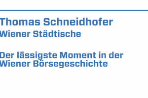 Thomas Schneidhofer, Wiener Städtische, nennt seine subjektiv lässigsten Momente in der Wiener Börsegeschichte: 1. BWIN wird international entdeckt und der Fan-Spruch „Betty forever“ wird kreiert, wurde danach übernommen und heißt heute Entain. 2. S immo stieg nach dem Crash 2007 ab 2009 wie der Phönix aus der Asche und lässt bis heute vom Low bei 1,50 € alle anderen Wiener Immowerte alt aussehen 3. Erste Group: Treichl schafft mit der Devise „erweiterter Heimmarkt“ eine EU-weite Expansion und Erfolgsstory. 4. RBI-IPO: Die in den CEE-Ländern tätige Raiffeisen-Bank geht mit ihren CEE-Töchtern mittels dem RBI-IPO an die Wiener Börse, 10fach überzeichnet 5. Austria Email wird von einem internationalen Insti... » Weiterlesen