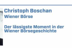 Christoph Boschan, Wiener Börse, nennt seine subjektiv lässigsten Momente in der Wiener Börsegeschichte: 1. 2. September 2021: 250. Jahrestag der Wiener Börse und gleichzeitig ein neues Allzeithoch im ATX TR 2. Die größeren IPOs der letzten Jahre: 25.10.2017 BAWAG, 1.2.2019 Marinomed Biotech, 14.5.2019 Frequentis, 12.07.2019 Addiko Bank 3. Start Feiertagshandel am 30. Mai 2019 4. Start des Segments global market am 22. Mai 2017 5. Einführung des T7 Handelssystem, 31. Juli 2017 Hintergrund: Im Börse Social Magazine #60 wählten wir gemeinsam mit firesys und 50 MarktteilnehmerInnen, die je 5 Inputs bringen konnten (also Sample 250 am Ende der 250er-Feiern der Wiener Börse), den lässigsten Moment in der Wiener Börsegschichte. (Der... » Weiterlesen