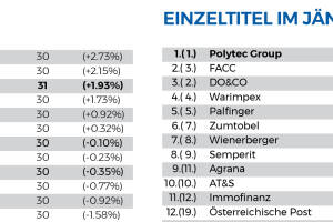 31x Jänner hat es bisher in der ATX TR-Geschichte gegeben und vor Monatsbeginn 2021 lag der Schnitt bei +1,93 Prozent. Mit dem 3.86-Prozent-Plus im Jänner 2021 hat sich die durchschnittliche Performance über alle 31 Jahre auf 1,99 Prozent erhöht. Der Jänner rangiert damit auf Nr. 3 der 12 Monate. In der Jänner-Einzelaktiensicht aller aktuellen ATXPrime-Titel ist nun Polytec vorne, dies mit durchschnittlich +11,51% in 15 Jahren Börsenotiz. Auch FACC mit +9,82% (7 Jahre) und Do&Co mit +8,60 Prozent (23 Jahre) sind extreme Jänner-Kings., Do&Co ist damit die Nr. 1 im ATX TR. Auf Rang 1 im ATXFive ist Wienerberger mit 4,19%. Übrigens: Der Februar ist auf Rang 2 zu finden im Monatsranking aller 12 Monate. Und wie schaut an am 8. Februar aus? B... » Weiterlesen