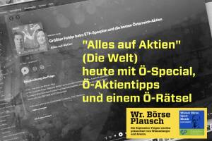 HÖREN: boersenradio.at page podcast 3399 Die Wiener Börse Pläusche sind ein Podcastprojekt von Christian Drastil Comm. Unter dem Motto „Market & Me“ berichtet Christian Drastil über das Tagesgeschehen an der Wiener Börse. In Folge S3 12 spreche ich (leider wieder sehr verkühlt, aber alleine im Studio) über die aktuelle Folge eines meiner Lieblingspodcasts, Alles über Aktien (AAA) der "Welt"-Redaktion.AAA hat heute ein Österreich-Special gemacht AT&S bzw. Mayr-Melnhof als Favoriten der AAA-Hörer:innen ausgemacht. Analystenfavoriten aus Österreich seien Pierer Mobility, Do&Co, UBM, easymotion, Marinomed., Wolftank, Warimpex und Andritz. easymotion? Nö, die haben leider nichts mit der Wiener Börse zu tun. Baader Bank ... » Weiterlesen