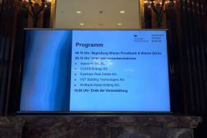 Die Wiener Privatbank und die Wiener Börse haben zum Investment Breakfast geladen , präsentiert haben vor den 30 Gästen mitunter auch die PIR-Unternehmen Cleen-Energy, Wolftank-Adisa, beaconsmind und VST Building . Hier eine kurze Zusammenfassung der gezeigten Präsentationen: Cleen Energy-Vorstand Lukas Scherzenlehner hat bei seiner Präsentation den nachhaltigen Aspekt der Aktie hervorgehoben. Es handle sich bei der Cleen Energy-Aktie, die heuer schon mehr als 100 Prozent zugelegt hat, um ein grünes und zukunftsorientiertes Investment . Rückenwind kommt von den gesteckten Klimazielen der Regierung. Das Unternehmen ist mittlerweile neben den Bereichen Photovoltaik und LED-Beleuchtung auch in den Segmenten Wärmepumpen, Wasserstoffspeicher oder E-Mobilität t&aum... » Weiterlesen