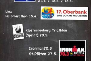 Meine Bewerbe für die erste Hälfte 2018 sind nun fixiert. Das größte Ziel und meine größte Herausforderung: Der Ironman Austria in Klagenfurt am 1. Juli. Davor noch eine Halbdistanz in St.Pölten und einen Sprint in Klosterneuburg. Leider entfällt wegen des Ironmans für mich der Frühjahrsmarathon (mein Läuferherz blutet), aber immerhin darf ich beim Halbmarathon in Linz dann alles geben. Wie jedes Jahr werde ich auch heuer wieder die Winterlaufserie und die Eisbärläufe in mein Training miteinbeziehen. Ich freue mich auf eine spannende Saison und darauf, viele von euch wieder zu treffen. p>Diskussion und Inspiration zur Sportschreiberei auf Sportsblogged » Weiterlesen