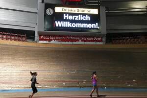So still. Und dunkel. Nachgerade düster. Oder - ja, das ist es: gespenstisch. Irgendwas fehlt. Das Zischen. Das Rauschen. Das Rasen. Die Wischeffekte in der Wand. Stimmt, das ist es: Wo sind, bitteschön, die Bahnradfahrer? Lauftraining im Dusika-Stadion ganz ohne Biker in der Wand?Geht gar nicht! (Sauanstrengend war es trotzdem, oder Harald Fritz , Ruth Reiter , Moni Broni , Melanie Trimmel , Markus Steinacher ?) - Und wer mehr über das Laufen in der Halle wissen will, findet dazu ab morgen, Mittwoch, eine ausführliche Reportage auf www.derstandard.at rotterennt . Mit Bildern & Experten. # rotterennt # teamausdauercoach p>Diskussion und Inspiration zur Sportschreiberei auf Sportsblogged » Weiterlesen