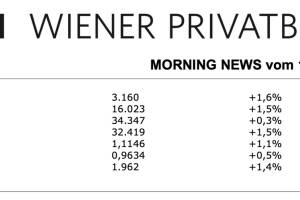 Aus den Morning News der Wiener Privatbank: "Die Wiener Börse hat am Mittwoch mit deutlichen Kursgewinnen geschlossen. Von Sitzungsbeginn an ging es am Wiener Markt kontinuierlich nach oben, gestützt von positiven Vorgaben der Wall Street vom Vortag. Mit der Veröffentlichung frischer US-Inflationsdaten sprang der heimische Leitindex dann auf ein noch höheres Niveau und schoss um 1,61 Prozent fester auf 3.160,23 Einheiten. Der breiter gefasste ATX Prime legte um 1,55 Prozent auf 1.602,43 Zähler zu. In den USA hat sich die Inflation im Juni weiter abgeschwächt und fiel zudem noch ein wenig besser aus als am Markt erwartet worden war. Die US-Konsumentenpreise stiegen demnach zum Vorjahr um 3,0 Prozent, Analysten hatten mit 3,1 Prozent gerechnet. Im Mai war die Rate noch bei 4,0 ... » Weiterlesen