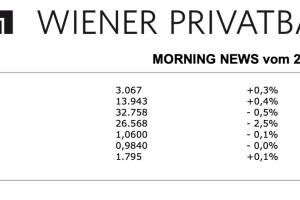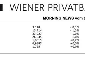 Aus den Morning News der Wiener Privatbank: "Gestern Mittwoch präsentierte sich der heimische Aktienmarkt schwächer. Der ATX startete zu Beginn tiefer und schaffte es im Laufe des Tages nicht aus dem roten Terrain zu kommen. Zu Handelsschluss stand ein Verlust von 0,7 Prozent bei 3.122,96 Punkte fest. Die Meldungslage war auch gestern erwartungsgemäß sehr dünn. Schwache Vorgaben aus Asien belasteten den ATX. Verlierer des Tages war Porr mit einem Abschlag von 3,9 Prozent, gefolgt von Frequentis mit 2,8 Prozent minus. Bei den Banken konnte als einzige die kleine Addiko Bank ein gutes Kursplus erzielen, die Erste Group schaffte mit plus 0,1 Prozent gerade noch ein positives Vorzeichen. Schlechter stand es für die Raiffeisen Bank International mit 0,2 Prozent Abschlag und die B... » Weiterlesen
