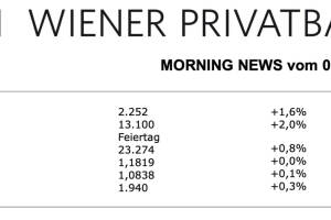 Die gebremste Stimmung der europäischen Anleger schlug sich auch auf den heimischen Markt nieder, der ATX musste 0,3% abgeben. Allgemein war die Meldungslage zu den einzelnen Unternehmen sehr dünn, heute wird der Flughafen Wien die Verkehrszahlen präsentieren, im Vorfeld dieser Veröffentlichung kam es gestern zu einem Anstieg von 1,4%. Die Bawag gab gekannt, die Anzahl der Vorstandsmitglieder von sechs auf fünf zu reduzieren und insgesamt die Struktur des Konzerns zu vereinfachen, gestern musste die Aktie einen marktkonformen Rückgang von 0,3% hinnehmen. Besser lief es für die Erste Group, die sich um 1,3% verbessern konnte, die Raiffeisen hingegen musste den Handel mit einem Minus von 0,7% beenden. Die großen Zuwächse bei Einzeltiteln blieben gestern aus, bes... » Weiterlesen