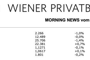 Behaupten konnte sich gestern der heimische Markt, der ATX beendet den Handel besser als das europäische Umfeld mit einem leichten Plus von 0,2%. Die Bankentitel wechselten während des Handels öfter das Vorzeichen, am Ende gab es nahezu unveränderte Notierungen, die Erste Bank konnte marginal zulegen, die Bawag verzeichnete ein Minus von 0,1%, die Raiffeisen konnte um 0,2% höher schliessen. Der Flughafen Wien tendierte nach Vorlage der Verkehrszahlen schwächer, zwar wurden im Juni fast sieben Mal so viele Fluggäste wie im Vormonat verzeichnet, verglichen mit dem Jahr zuvor war es aber immer noch ein Einbruch von 95 Prozent, die Aktie musste einen Kursrückgang von 1,8% hinnehmen. Die Raiffeisen Centro Bank revidierte die Empfehlung für Agrana von „Buy&ldqu... » Weiterlesen