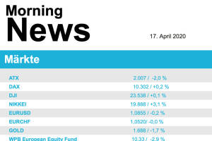 Gestern waren die wichtigsten europäischen Börsen auf Grund des Osterwochenendes noch geschlossen, nachdem sie vor dem Osterwochenende dank des Kreditprogrammes der Fed mit schönen Zuwächsen in das lange Wochenende gegangen waren. So konnte der EuroStoxx 50 am Donnerstag um 1,5% anziehen, in Paris legte der Markt 1,4% zu, in Deutschland gab es für den Dax ein Plus von 2,2% und in London schloss der FTSE 100 deutlich verbessert mit einem Zuwachs von 2,9%. Die heimische Börse zeigte sich noch klarer verbessert, der ATX schloss am Donnerstag mit einem Zuwachs von 3,3%. Diese Woche stehen für morgen die Inflationsdaten aus Spanien, Italien und Frankreich auf dem Programm, am Donnerstag dann die Inflation in Deutschland und die Industrieproduktion in der Eurozone und am Frei... » Weiterlesen