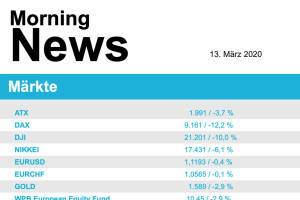 Nachdem die europäischen Börsen wieder mit deutlichen Abgaben in die neue Woche starteten, konnten sie die Verluste gegen Ende doch noch eindämmen. Der EuroStoxx 50 schloss mit einem Minus von 5,3%, der französische CAC 40 sackte 5,8% ab, der Dax konnte sein Minus auf 5,3% reduzieren und in London ging der FTSE 100 mit einem Minus von 4,0% aus dem Handel. Mehrere Notenbanken rund um den Globus haben mittlerweile geldpolitische Eingriffe angekündigt, um die wirtschaftlichen Folgen der Pandemie abzumildern. So hat auch die US-Notenbank zu weiteren drastischen Mitteln gegriffen. In einer Notfallaktion senkte sie den Leitzins in der Nacht zum Montag überraschend um einen ganzen Prozentpunkt auf fast null Prozent und kündigte ein Maßnahmenpaket in Koordination mit ande... » Weiterlesen