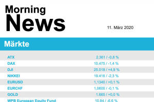 Das, was sich gestern an den Börsen in Europa abgespielt hat, lässt sich am besten mit dem Wort Panik beschreiben. Nachdem Italien über das Wochenende ein Viertel des Landes abgeriegelt und unter Quarantäne gestellt hatte, setzte Verkaufswelle ein, die den EuroStoxx 50 um 8,5% einbrechen liess und auf das niedrigste Niveau seit Jänner 2019 brachte. Zusätzlich erlebte der Ölpreis den stärksten Einbruch seit fast 30 Jahren, nachdem Verhandlungen führender Ölstaaten über eine Drosselung der Fördermenge gescheitert waren. Auch die Börse in Paris musste 8,4% abgeben, in Deutschland fiel der Dax um 7,9% und in London endete der Handel mit einem Minus von 7,7% für den FTSE 100. Am deutlichsten war der Rückgang in Italien, die Mailä... » Weiterlesen