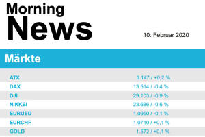 An den europäischen Aktienmärkten ist es am Donnerstag weiter nach oben gegangen. Neben der Entspannung an der Coronavirus-Front - u.a. nach Berichten über Behandlungsfortschritte - sorgte auch Berichtssaison der Unternehmen für Zuversicht und anhaltende Kauflaune. Dazu trug auch bei, dass China wie mit den USA verabredet, am 14.Februar Strafzölle auf US-Importe um die Hälfte senken wird. Der DAX gewann 0,7 Prozent auf 13.575 Punkte, für den Euro-Stoxx-50 ging es ebenfalls um 0,7 Prozent auf 3.806 nach oben. Im Tageshoch erreichte der deutsche Index 13.607 Punkte, womit ihm nur noch 33 Punkte zu seinem Allzeithoch bei 13.640 fehlten. An den Finanzmärkten greift mehr und mehr die Erwartung um sich, dass sich die negativen Auswirkungen des Coronavirus-Ausbruchs - a... » Weiterlesen