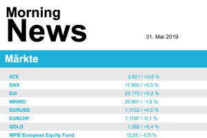Im internationalen Handelskonflikt verhärten die Fronten immer mehr und lassen die Aktienkurse an den europäischen Börsen sinken. Am Freitag setzte die Ankündigung der USA, Mexiko mit Strafzöllen zu belegen, vor allem dem Autosektor zu. Aber auch die nochmalige Zuspitzung des Streits zwischen den USA und China sorgte für Abgabedruck. Dadurch ergab sich für den Monat Mai beispielsweise für den EuroStoxx 50, aber auch für die meisten anderen Indices, ein klares Minus, es war aber das erste negative Monat in diesem Jahr. Am stärksten belastet durch die Ankündigung neuer Zölle wurde der Autosektor, da dadurch die in Mexico produzierten Autos in den USA zu einem deutlich höheren Preis verkauft werden müssen, und gab in Summe knapp 2,0% ab. ... » Weiterlesen