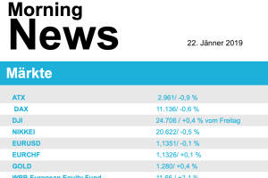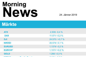 Nach den starken Zuwächsen vom Freitag mussten Europas Börsen einen kleinen Teil der dabei erzielten Gewinne gestern wieder abgeben. Schwache Wirtschaftsdaten aus China, wo die Wirtschaft 2018 so langsam gewachsen war wie seit drei Jahrzehnten nicht mehr, dämpften die Stimmung ein wenig. Impulse aus den USA gab es am Montag nicht, denn die Wall Street blieb wegen eines Feiertages geschlossen. Im Fokus stand am Nachmittag die Rede von Großbritanniens Premierministerin Theresa May zum "Plan B" für das in der vergangenen Woche vom Parlament abgelehnte Abkommen mit der EU. Wesentlich Neues, das die Aktenmärkte hätte bewegen können, verkündete May nicht. Am schwächsten präsentierten sich am gestrigen Handelstag die Versorger mit einem Minus von 1,1%, Indu... » Weiterlesen