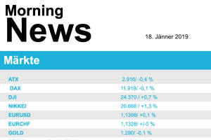 Europas Aktienmärkte haben am Mittwoch der klaren Ablehnung des Brexit-Abkommens durch das britische Parlament getrotzt und überwiegend zugelegt. Lediglich in London ging es mit den Aktienkursen etwas bergab. Hier drückten aber einige negative Unternehmensnachrichten auf die Stimmung. Bei den Sektoren hatten am gestrigen Handelstag die Banken die Nase vorn, insgesamt konnte die Branche ein Plus von 2,5% erzielen. Die Lebensmittel- und Getränkehersteller waren das Schlusslicht mit einer Abgabe von 0,9%, hier belastete vor allem eine negative Analystenstimme zu Anheuser-Busch, der Brauereikonzern verzeichnete ein Minus von 2,7%. Der dänische Transport- und Logistikkonzern DSV legte ein Übernahmeangebot für den Schweizer Konkurrenten Panalpina vor, der daraufhin einen Kurss... » Weiterlesen