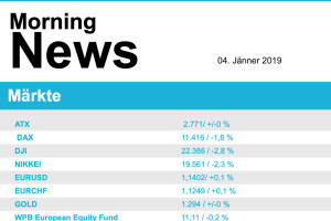 Nach den Feiertagen und dem Jahreswechselstarten die Börsen in den Jänner. Die Investoren werden besonders die Daten, die Entwicklungen zum Brexit und den Handelskonflikt im Fokus haben. Auch der Government Shutdown in den USA ist noch ungelöst. Noch eine kleine Rückschau:Der DAX schloss am Freitag mit einem deutlichen Plus. Für die zuletzt stark gebeutelte Wirecard -Aktie ging es um 4,3 Prozent nach oben. Geht es nach dem Erstinvestor und früheren Aufsichtsratschef Klaus Rehnig, ist Wirecard ein Übernahmekandidat ein. Ein Gebot sieht er bis zu 50 Prozent über dem aktuellen Kurs. Covestro zogen um 2,5 Prozent an. Der Spezialchemiekonzern will durch Zukäufe weiter wachsen. Der ATX gewann am Freitag 2,4 Prozentund war damit ein europäischer Outperf... » Weiterlesen