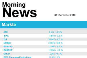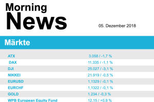 Die Nachricht, dass die Finanzchefin und Tochter des Gründers von Huawei auf Betreiben der USA in Kanada wegen Bruches der Sanktionen gegen den Iran verhaftet worden war, traf die Aktienmärkte gestern auf dem falschen Fuß. Hatte zu Wochenbeginn noch großer Optimismus geherrscht, dass es im Handelsstreit zwischen China und den USA zu einer baldigen Einigung kommen könnte, erlitten diese Hoffnungen dadurch einen gewaltigen Dämpfer. Die weiter anhaltenden Querelen um das italienische Budget und die Brexit-Debatte im britischen Parlament trugen ein Übriges dazu bei, dass die europäischen Börsen den größten Tagesverlust seit dem Entscheid für den Brexit erlitten. Besonders in Mitleidenschaft gezogen wurden Minen-, Rohstoff- sowie Öl- und Gasak... » Weiterlesen