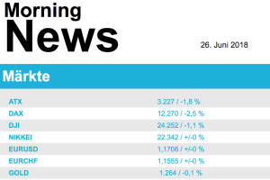 Investoren warten ab nachdem US-Präsident Donald Trump eine weitere Verschärfung im Handelskonflikt angedroht hat, diesbeunruhigt derzeitdie Anleger rund um den Globus und liess die europäischen Märkte mit deutlichen Abgaben die neue Woche beginnen. Nach der Drohung mit Sonderzöllen auf Wagenimporte aus Europa wird jetzt überlegt, den Verkauf bestimmter Technologiefirmen an chinesische Investoren zu verbieten. Aus Branchensicht gab es nur klare Abgaben, am schlimmsten erwischte es die konjunktursensiblen Rohstoffwerte, die ein Tagesminus von 3,8% erlitten. Technologiewerte schlossen 2,8% schwächer, und die Versorger hielten sich mit einem Minus von 0,9% noch vergleichsweise am besten. Roche konnte dank einer positiven Studie zu einem neuen Medikament gegen Lungenkrebs ... » Weiterlesen