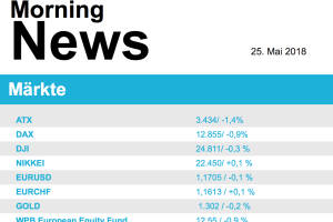 Zunächst drückte neben dem schwelenden Handelskonflikt USA China und der politischen Entwicklung in Italien auf die Stimmung, dass die USA Importzölle auf Kraftfahrzeuge in Erwägung ziehen. Der Sektorindex der Autos verlor 1,9 Prozent. Am Nachmittag verstärkte sich der Abwärtsdruck dann, nachdem US-Präsident Trump das Treffen mit Nordkoreas Diktator Kim Jong Un abgesagt hatte. Deutsche Bank und Commerzbank fielen beide auf neue Jahrestiefststände und gaben 4,8 Prozent bzw. 6,5 Prozent ab. Während die Branche woanders floriere, seien die deutschen Häuse mit sich selbst beschäftigt, hieß es. Die Deutsche Bank hatte zudem bekanntgegeben, dass sie die Investmentsparte verkleinert, was das Jahresergebnis 2018 belasten wird. Der ATX verlor 1,4%, ... » Weiterlesen