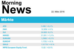 Deutlich schwächer tendierten die europäischen Börsen am gestrigen Handelstag. Die Aussicht auf schneller steigende Zinsen, ein drohender Handelskrieg mit den USA sowie enttäuschende Konjunkturdaten wurden als Belastungsfaktoren genannt. So hatte sich der Ifo-Geschäftsklimaindex in Deutschland eingetrübt. Zudem waren die Einkaufsmanagerindizes in Deutschland, Frankreich und der Eurozone schwächer als von Experten erwartet ausgefallen. Da half es auch nichts, dass die EU Ausnahmeregelungen für die Strafzölle auf Stahl und Aluminium erhalten soll. Branchenweit hielten sich die Hersteller von Konsumgütern mit einem Minus von 0,2% noch am besten. Das war unter anderem Reckitt Benckiser zu verdanken, die Briten hatten Gespräche mit Pfizer über einen... » Weiterlesen