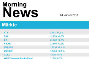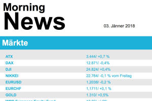 Der anhaltend starke Euro bremste auch am ersten Handelstag des Jahres die europäischen Börsen etwas ein. Anhaltend gute Konjunkturaussichten liessen die Gemeinschaftswährung knapp an ein Dreijahres-Hoch kommen. Solide Stimmungsdaten unterstützten diesen Trend noch und liessen daher kaum Kaufstimmung für Aktien aufkommen. Bei den Sektoren waren vor allem die Ölwerte stark, der Branchenindex zählte mit einem Plus von 0,5% zu den wenigen Gewinnern. Und dies, obwohl BP Belastungen auf Grund der US-Steuerreform in Aussicht stellen musste und rund 1,0% verlor. Besser war aber noch der Sektor der Rohstoffproduzenten, hier halfen die guten konjunkturellen Aussichten und die weiter steigenden Metallpreise zu einem Tagesgewinn von 1,2%. Für Gesprächsstoff sorgte auch di... » Weiterlesen