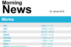 Leicht nach oben ging es zum Wochenauftakt für die meisten europäischen Börsen. Lediglich in London wirkte das erstarkende Pfund hemmend auf die Kauflust und der Index verzeichnete ein leichtes Minus. Unterstützung kam vor allem vom grünen Licht der SPD-Basis in Deutschland zu Koalitionsverhandlungen mit der Union. Sonst waren es vor allem Übernahmeangebote, die einzelne Aktien stark bewegten. Yoox-Net-A-Porter in Mailand schoss fast 25,0% in die Höhe, nachdem der Schweizer Luxusgüterkonzern ein Kaufangebot für das Unternehmen abgegeben hatte. Richemont hingegen musste in Zürich knapp 1,6% abgeben. Sanofi will das auf seltene Blutkrankheiten spezialisierte US-Biotechunternehmen Bioverativ kaufen und bietet einen Aufschlag von 64 Prozent zum letzten Handels... » Weiterlesen