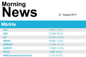 Fortgesetzt hat sich gestern die Erholungstendenz bei den wichtigsten europäischen Aktienmärkten, die allesamt mit Zuwächsen den Tag beschließen konnten. Die Nordkorea-Krise rückte weiter in den Hintergrund, während positive Konjunkturdaten den Investoren die nötigen Impulse geben konnten. In Italien lag beispielweise die Wirtschaft im zweiten Quartal erneut auf Wachstumskurs. Am stärksten gefragt war in Europa wieder einmal der Minensektor, der Branchenindex konnte ein Plus von 2,5% erreichen. Gestützt wurde der Sektor vor allem durch steigende Preise bei Industrierohstoffen, am eindrucksvollsten war die Performance bei Glencore mit einem Gewinn von 4,0%. Als schwächster Sektor rangierte gestern Telekom mit einem Minus von 0,1% am Ende der Kurstabelle... » Weiterlesen