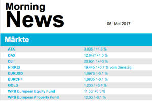 Relativ ereignislos plätscherte gestern der Handel in Europa dahin, gegen Ende des Tages drehten die wichtigsten Indices noch ins Plus und konnten damit ihre Gewinne vorm Wochenauftakt weiter halten. Heute steht die Zinssitzung der EZB im Mittelpunkt des Interesses, man erwartet sich vor allem von den Formulierungen Hinweise, dass die Währungshüter ebenfalls einen positiveren Eindruck von der Wirtschaftsentwicklung gewonnen haben. Credit Suisse sorgte mit der Ankündigung einer Kapitalerhöhung anstatt des Börseganges des Privatkundengeschäftes für frischen Wind und schloss 2,7% höher. Air Liquide konnte im ersten Quartal einen kräftigen Umsatzsprung vermelden und gehörte mit einem Kursplus von 1,1% zu den attraktivsten Werten im EuroStoxx 50. Der... » Weiterlesen