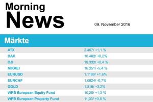 Der Verzicht des FBI auf weitere Ermittlungen gegen US-Präsidentschaftskandidatin Hillary Clinton in der sogenannten Email-Affäre wurde von den Investoren mit Erleichterung aufgenommen und ließ die Kurse an den Börsen und den Dollar auf breiter Front steigen. Nach Ansicht der Marktteilnehmer sind damit die Chancen auf einen Wahlsieg Clintons gestiegen. Nach überraschend guten Ergebnissen der HSBC im dritten Quartal stieg die Aktie um 4,6%. Ansonsten gab es wenig neue fundamentale Nachrichten und so bleibt die US-Wahl im Fokus der Investoren. Der ATX gewann 0,8%. gesucht waren voestalpine (+3,8%), Wienerberger (+3,3%) und Uniqa (+2,5%). Präsidentin Hillary Clinton oder Präsident Donald Trump - nun haben die Wähler das Wort. Mit Großkundgebungen d... » Weiterlesen