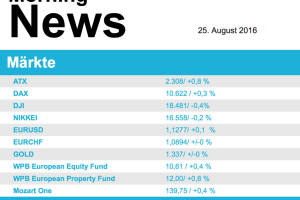 Gestiegene Zinserhöhungserwartungen nach dem Zentralbanker-Treffen in Jackson Hole haben gestern auf die Kurse an Europas Börsen gedrückt. Die Wahrscheinlichkeit eines Zinsschritts in den USA im September ist nach der Rede von Fed-Chefin Janet Yellen auf rund 40 Prozent gestiegen. Für Dezember liegt die Wahrscheinlichkeit einer Zinserhöhung nun bei 65 nach zuvor 57 Prozent. Das Geschäft verlief aber in ruhigen Bahnen, unter anderem wegen eines Feiertags in Großbritannien. In Reaktion auf die Yellen-Aussagen legte der Dollar kräftig zu, was den Rohstoffsektor belastete, der 1,5% nachgab. Der ATX gewann 0,3%, gesucht waren Buwog (+2,4%), Immofinanz (+2,3%) und RBI (+1,6%). Die Fundamentaldaten aus den USA sind weiterhin sehr solide.Es wurden die persönlichen ... » Weiterlesen