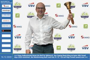 17.12.: Aleksandra Grabljic mit der Opening Bell für Donnerstag, Long Distance Style (vorher nachher unter photaq.com page index 3781 ). Die Studentin (Fachhochschule des BFI Wien) hat vor kurzem ihr Börsenhändler Diplom für den Handel mit Wertpapieren erhalten - mehr Choose Optimism: boerse-social.com category choose_optimism www.facebook.com chooseoptimism 16.12.: Peter Halbschmidt läutet die Bell für Mittwoch. Der Capital Bank Blog www.capitalbank.at de aktuelles blog ist beim VBV Smeil Alps 2020 nominiert, die Abstimmung läuft noch bis 31.12. 12h auf http: smeil-award.com http: www.vbv.at - Mehr Choose Optimism: boerse-social.com category choose_optimism www.facebook.com chooseoptimism 15.12.: Birgit Ulbing läutet die Opening B... » Weiterlesen